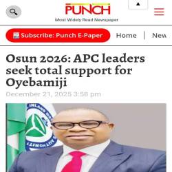 APC leaders in Osun are calling for unity and total support for their governorship candidate, Bola Oyebamiji, ahead of the 2026 election. They describe Oyebamiji as a "lo...