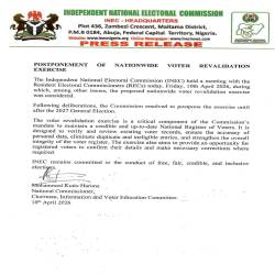 The Independent National Electoral Commission (INEC) held a meeting with the Resident Electoral Commissioners (RECs) today, Friday, 10th April 2026, during which, am...