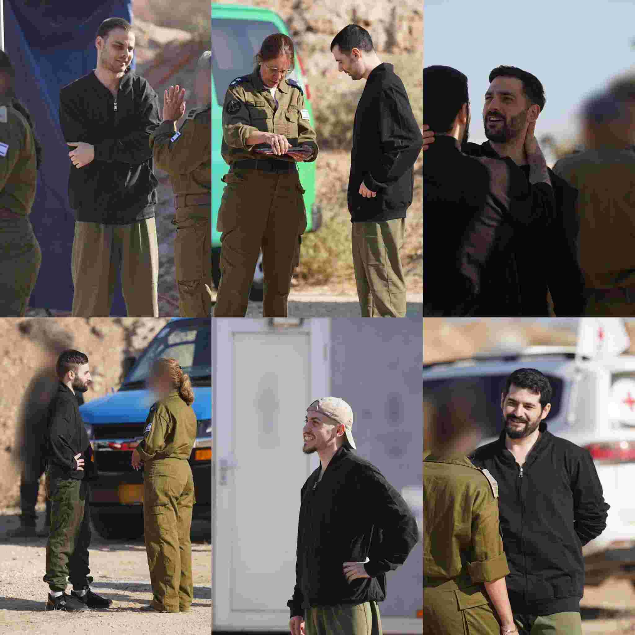 The first seven, Gali and Ziv Berman, 28 and 27, Matan Angrest, 22, Alon Ohel, 24, Omri Miran, 47, Eitan Mor, 25, and Guy Gilboa-Dallal, 23, are about to reunited with their families and will be taken to hospital.