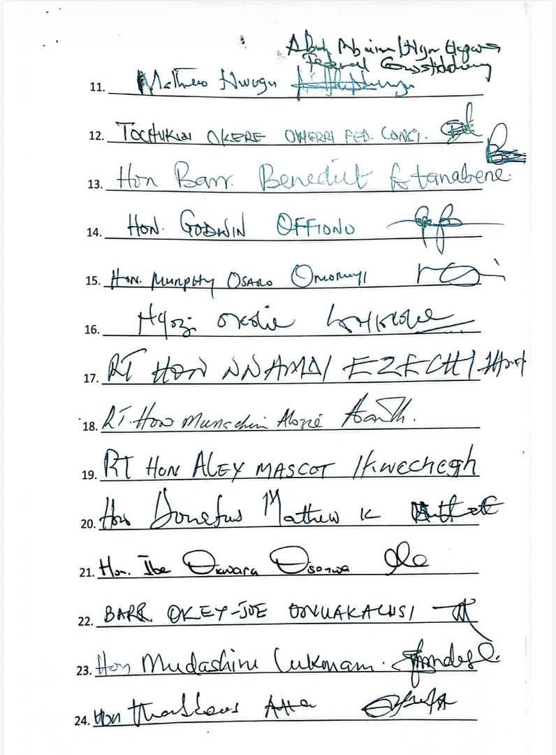 The letter addressed to President Bola Ahmed Tinubu was signed by Hon. Ikenga Imo Ugochinyere, Hon. Obi Aguocha, Hon. Murphy Osaro, Hon. Peter Akpanke, Hon. Mudshiru Lukman, Hon. Paul Nnamechi, Hon. Barr. Sunday Cyriacus, Hon. Obed Shehu, Hon. Engr. Dominic, Hon. Chief Ugwu Emmanuel, Hon. Daniel Asama Ago, Hon. Chike John Okafor, Hon. Adam Ogene Ogbaru, Hon. Emeka Martin’s Chinedu, Hon. Chimaobi Sam, Hon. Alex Mascot Ikwechegh, Hon. Donatus Matthew, Hon. Ibe Osonwa, Barr. Okey-Joe Onuakalusi, Hon. Mudashiru Lukman, Hon. Thaddeus Atta, Hon. Udema H. Okonkwo, Hon. Cyril Godwin, Hon. Princess Chinwe Nnabuike, Hon. Kana Nkemkama, Hon. Peter Aniekwe, Hon. Gwachem Maureen, Hon. Onwunka, Hon. Anayo Onwuegbu, Hon. Nwobosi Joseph, Hon. Amobi Godwin, Hon. Blessing Amadi, Hon. Anthony Adebayo Adepoju, Hon. Dr. Joshua Audu Gana, Hon. Chris Nkwonta, Hon. Emeka Idu, Hon. Peter Ifeanyi Uzokwe