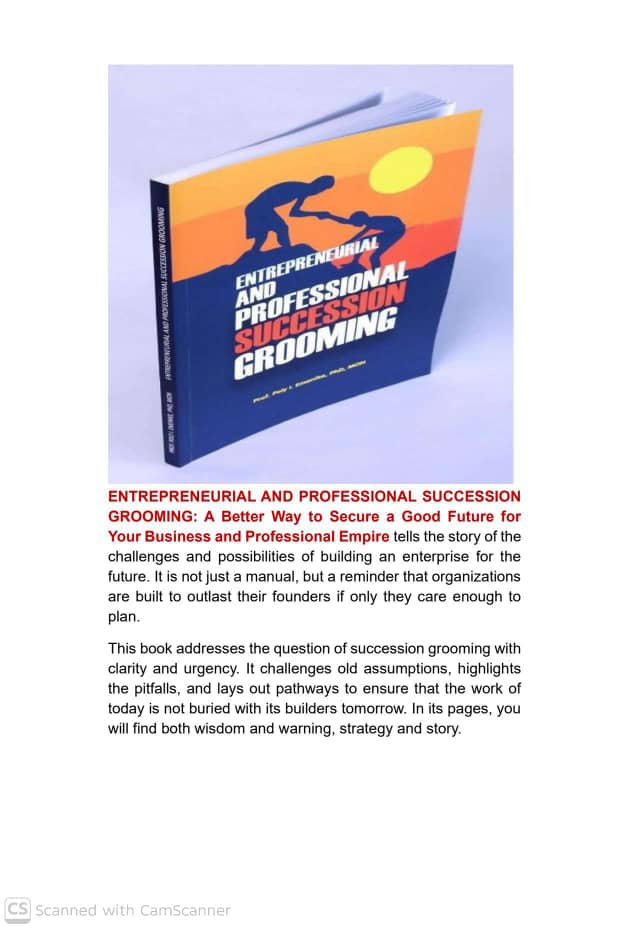His book titled “ENTREPRENEURIAL AND PROFESSIONAL SUCCESSION
