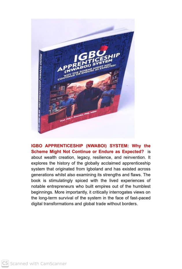 Also in the latest collection is “IGBO APPRENTICESHIP (NWABOI) SYSTEM: Why the Scheme Might Not Continue or Endure as Expected!”, where he critically examines the celebrated wealth-creation model that originated from Igboland. The work explores the system’s strengths, challenges, and the looming threat of extinction in an age of digital transformation and globalized trade, using case studies from entrepreneurs who rose from the apprenticeship tradition to become business giants.