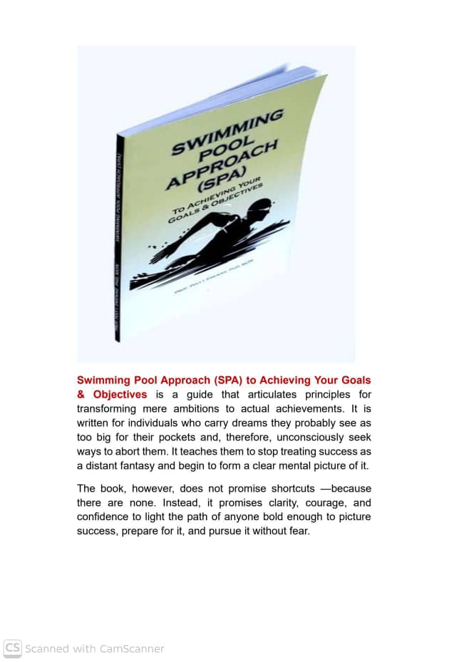 The seventh of the new books, “Swimming Pool Approach (SPA) to Achieving Your Goals & Objectives” lays out practical principles for turning dreams into actionable achievements. Without offering shortcuts, it provides motivation and clarity for individuals who doubt the feasibility of their aspirations or shy away from bold pursuits.