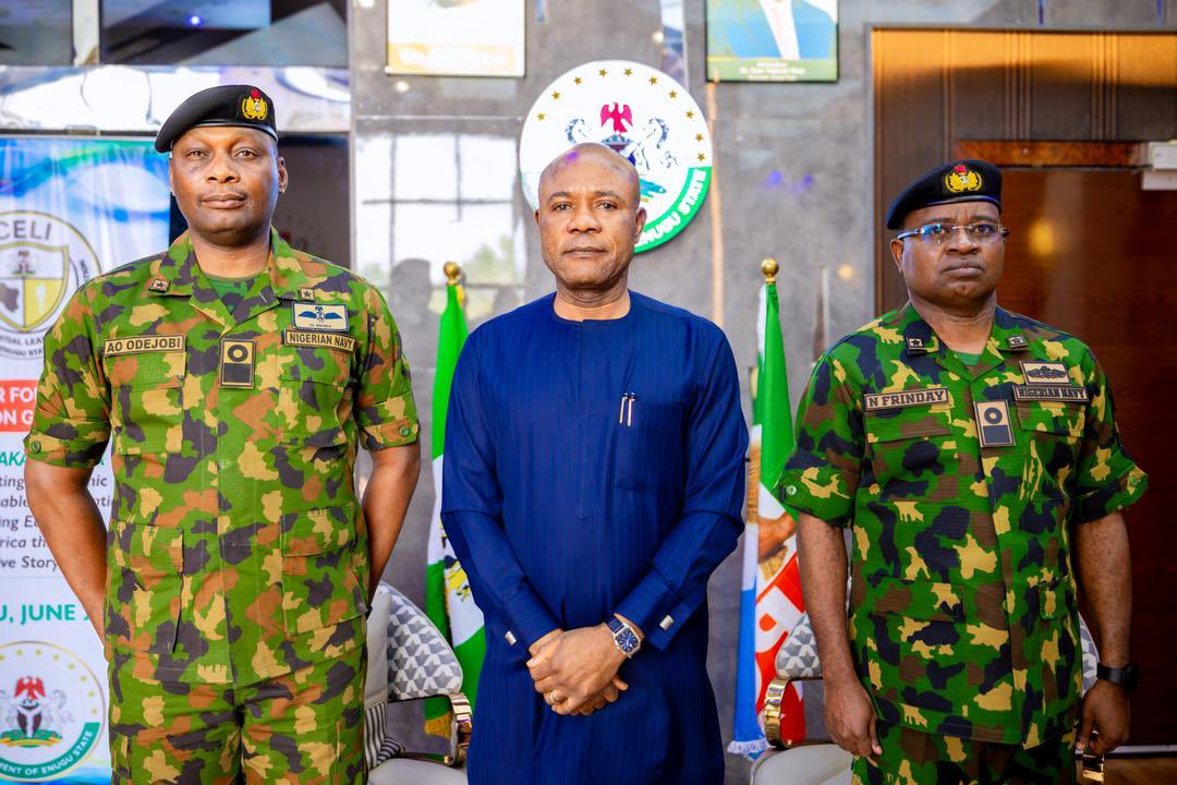 Governor Peter Mbah on Friday received the outgoing Commanding Officer of the Nigerian Navy NNS Madueke, Ogurugu Naval Base, Uzo Uwani LGA, Navy Commodore A. O. Odejobi, who has been redeployed to Naval Headquarters, along with his successor, Navy Commodore N. Frinday.