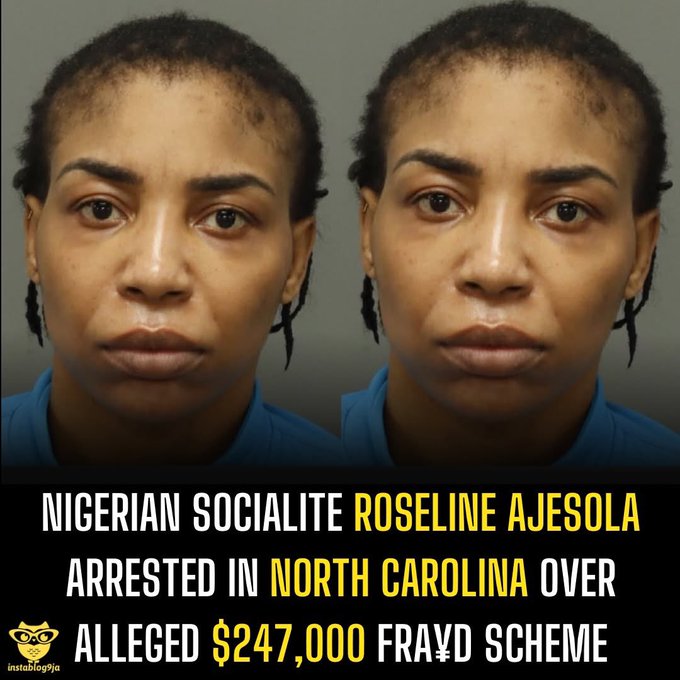 Authorities in Wake County, North Carolina, have arrested Roseline Iyewande Ajeshola, a Nigerian-American woman and well-known Lagos socialite, over allegations that she posed as a financial broker to defra¥d a victim of more than $247,000.