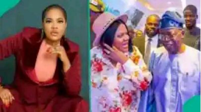 The 𝕏 user, identified as @mariolexxx, wrote: “The moment Toyin Aimaku pictures with Tinubu was drop in the group, they told us to be asking her for every comment section that “Wetin Tinubu tell you”.