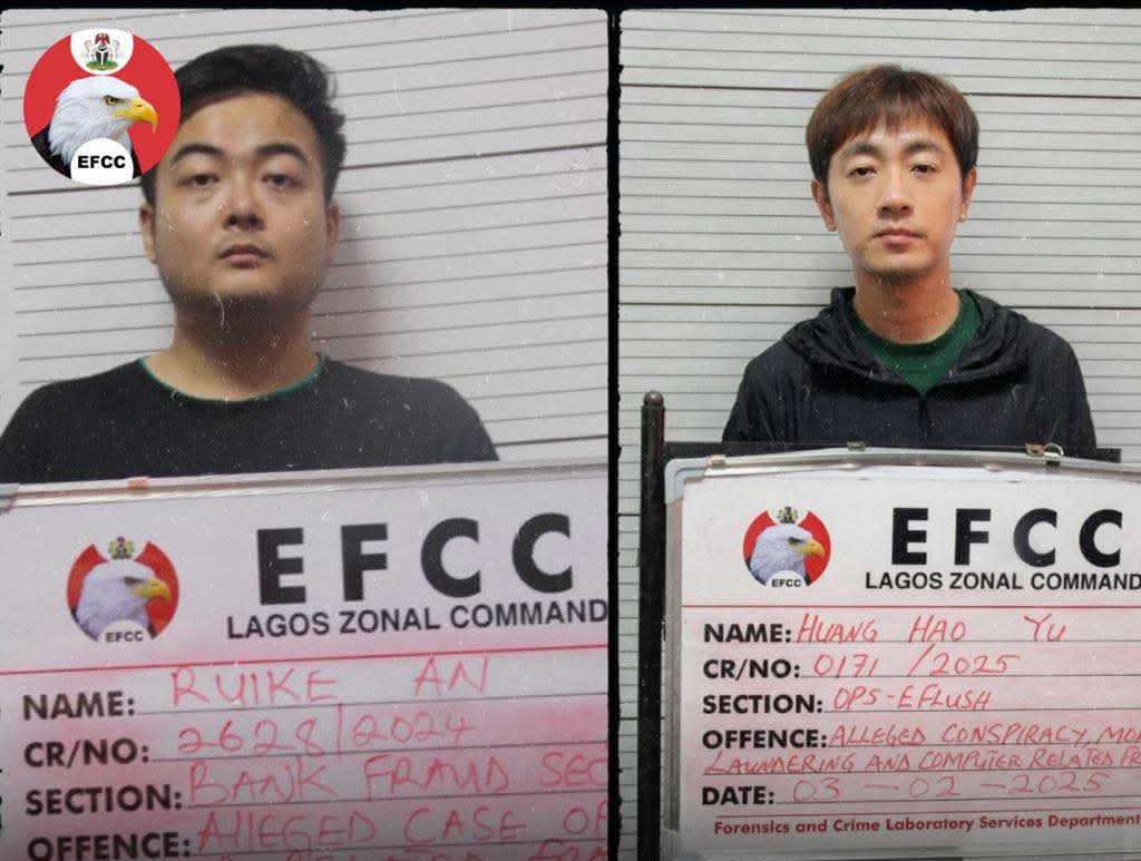 Justice Daniel Osiagor of the Federal High Court sitting in Ikoyi, Lagos, on Wednesday, February 11, 2026, convicted and sentenced two Chinese: Huang Haoyu and An Hongxu, to 46 years’ imprisonment each for cyber terrorism and internet fraud.