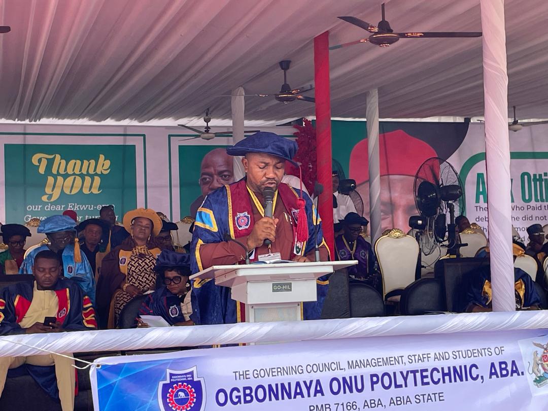 The Rector of Ogbonnaya Onu Polytechnic, Aba, Prof. Christopher Kalu Okoro, has officially welcomed new students during the institution’s 32nd matriculation ceremony, describing the occasion as historic and urging the matriculants to embrace discipline, hard work, and integrity throughout their academic journey.