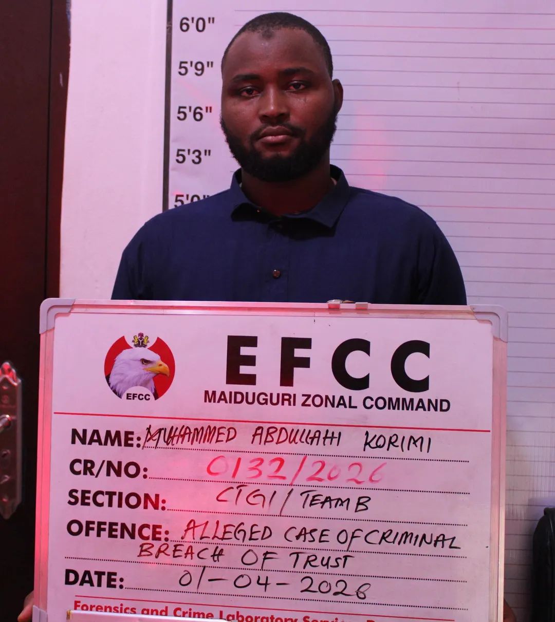 The Maiduguri Zonal Directorate of the Economic and Financial Crimes Commission, EFCC, on Thursday, April 16, 2026 arraigned one Mohammed Abdullahi Korimi before Justice Aisha Kumaliya of the Borno State High Court sitting in Maiduguri.