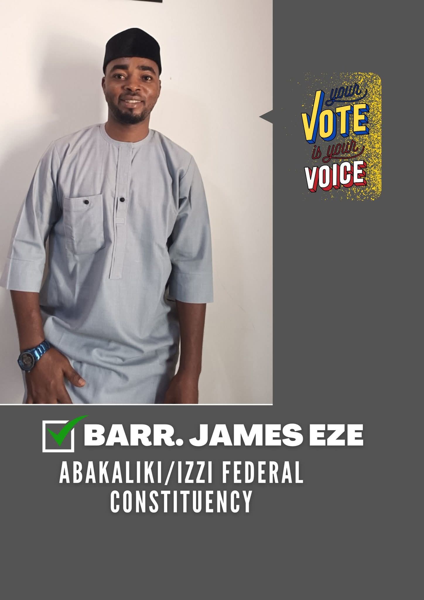 A legal practitioner and emerging political figure, James Ogochukwu Eze, has formally declared his intention to contest for the House of Representatives seat for Abakaliki/Izzi Federal Constituency in the 2027 general elections.