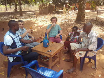 Photos of these white men enjoying themselves during a visit to Enugu-Ezike community in Enugu state have been trending online.