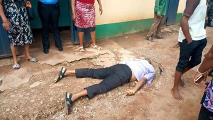 His son, Ebenezer and younger brother were arrested alongside himself and taken to Kpirikpiri Police station after receiving some beatings over the matter At the police station, Ebenezer was put behind the counter while his father was taken to the reception room of the Divisional Police Officer (DPO) by the policewoman and some policemen in the station pending when he would be taken to the DPO over the matter. But the man slumped and died in the room. He was said to be foaming in the mouth (vomiting) when Ebenezer was released and asked to go and carry his father’s body.