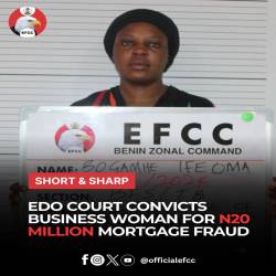The Benin Zonal Directorate of the EFCC has secured the conviction of Ifeoma Joy Bogamhe, a business woman for property fraud. Ifeoma was arraigned on a t...