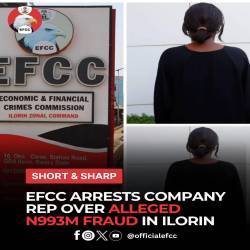The Ilorin Zonal Directorate of the EFCC has arrested a company representative, Kofoworola Motunrayo Kolawole, over an alleged fraud to the tune of N993,247,79...